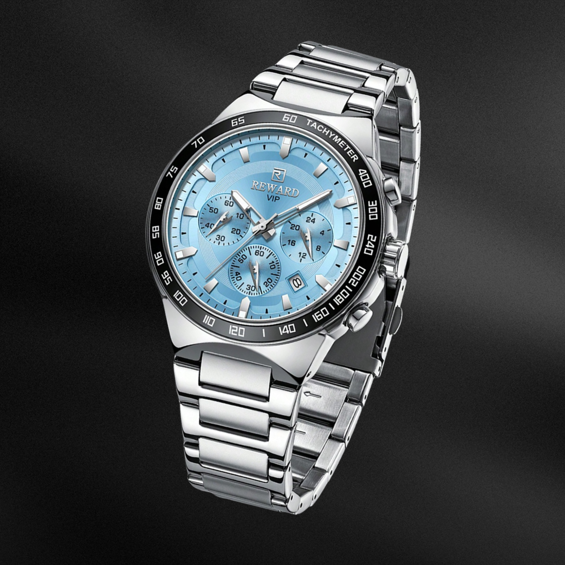 Relógio Cronógrafo Azul Pulseira Aço Bezel Tático Luxo